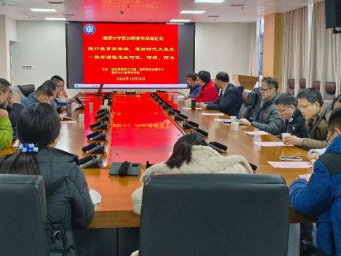 2024年12月24日下午4时,湘潭大学第20期教学高端论坛在7m即时比分 A418会议室成功举办。南京信息工程大学原党委副书记、副校长(正校级)、二级教授、博士生导师王尧教授莅临7m即时比分 为全体教师带来了一场题为“践行教育家精神,做新时代大先生——数学课程思政何位、何谓、何为”的专题报告。论坛由7m即时比分 副院长刘红良主持,张娟副院长出席,7m即时比分 本科教育教学督导组成员、本科教学与学位委员会成员、青年教师代表等参加。