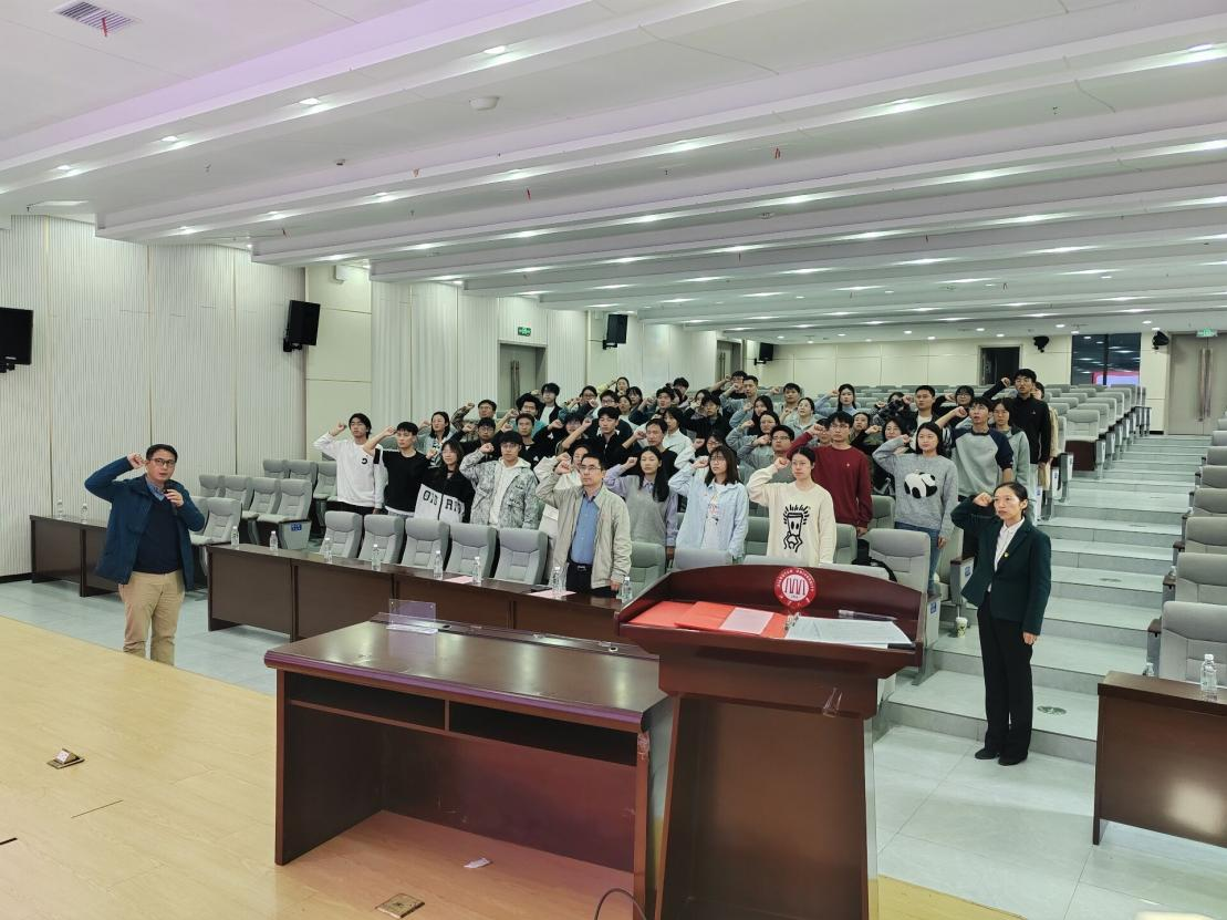 宣誓仪式后,2023 级应用统计专业黄春蕾同学作为预备党员代表上台发言。她结合自身的学习与实践经历,分享了对党的认识与向往。她承诺,将以此次入党为新的起点,时刻以党员标准严格要求自己,在专业学习中刻苦钻研,在服务同学中无私奉献,争取早日成为一名合格的正式党员。