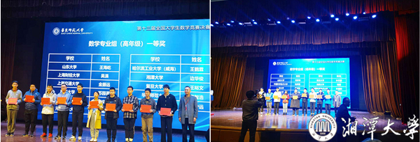 3月25日,第十三届全国大学生数学竞赛决赛在华东师范大学举行。我校5名参赛选手成绩优异,全部获奖,获得一等奖3项、二等奖2项。本届比赛湖南赛区获全国一等奖4项,其中湘大获3项。