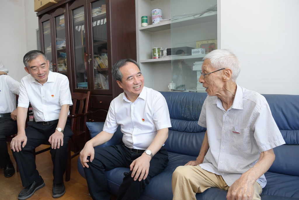 王成来到湘潭大学,了解高校党建、人才培养和学科建设等情况,看望慰问84岁的老教授老党员李寿佛,叮嘱要用心用力做好关爱帮扶老党员和联系服务专家学者工作。