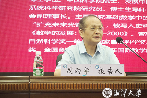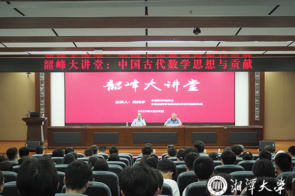 6月26日上午,韶峰大讲堂第2期第3场报告会在法7m即时比分 西附楼学术报告厅举行。湘潭大学校友、中国科7m即时比分 院士、中国科7m即时比分 数学与系统科学研究院研究员、湖南国家应用数学中心学术委员会委员周向宇做客韶峰大讲堂,作题为“中国古代数学思想与贡献”的学术报告,湖南国家应用数学中心主任黄云清教授主持报告会,副校长喻祖国出席。