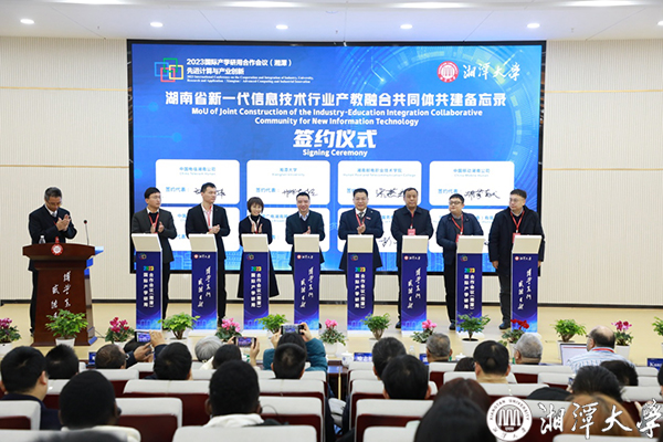 湖南省新一代信息技术产业产教融合共同体的8家发起单位签署共建备忘录,召开第一届第一次的常务理事会,宣告湖南省新一代信息技术产业产教融合共同体正式成立,并进入实体运营。