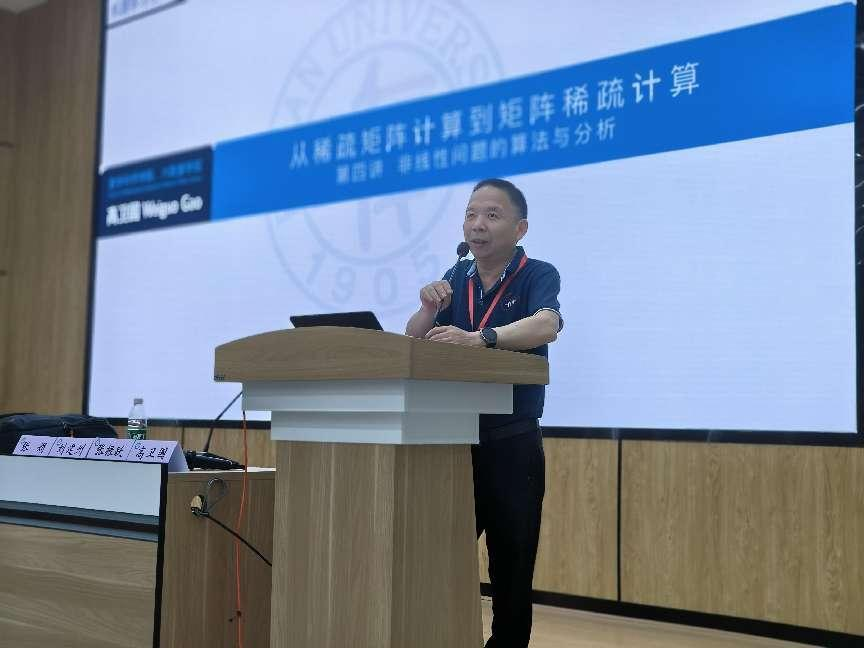 在“从稀疏矩阵计算到矩阵稀疏计算”课程中,高卫国教授介绍了数值模拟是科学研究的重要手段,结合其在计算物质科学和数据科学应用研究中遇到的数值线性代数问题,介绍矩阵乘法、正交分解、混合精度计算等稠密矩阵算法等稀疏矩阵计算算法。