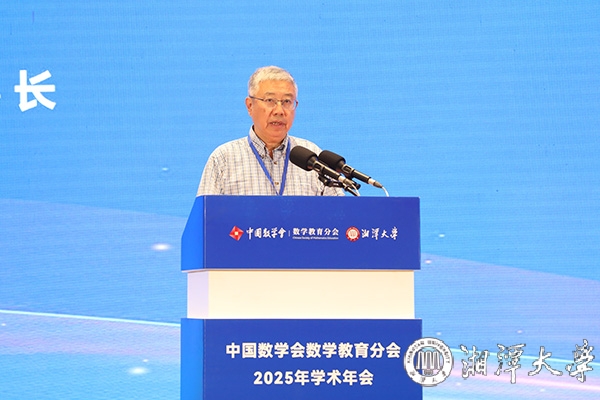 田刚向与会专家、代表介绍了数学教育分会成立以来所取得的工作成效。他表示,数学是自然科学与技术创新的基石,是推动社会进步和科技革命的核心驱动力。而数学教育作为基础教育的关键组成部分,不仅培养学生的逻辑思维、创新意识和解决问题的能力,更肩负着为国家培育未来人才、夯实科技根基的重大使命。他还特别提到,湘潭大学是毛主席亲自倡办、亲笔题写校名并亲切嘱托一定要办好的大学,数学学科底蕴深厚、特色鲜明,在此举办年会意义非凡。