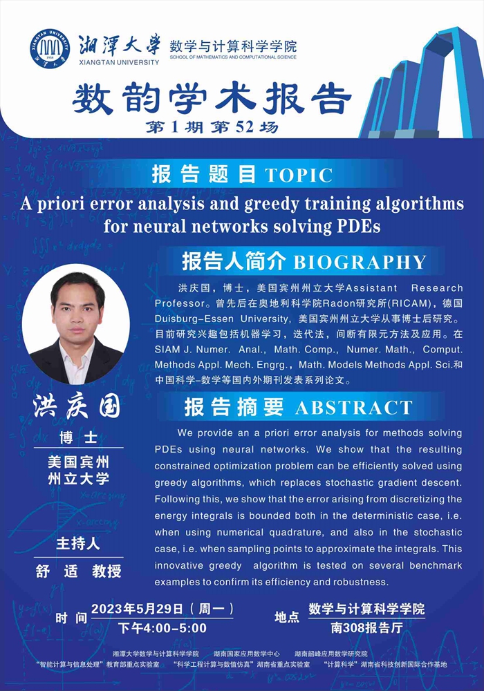 数韵学术报告- A priori error analysis and greedy training algorithms for neural networks solving PDEs