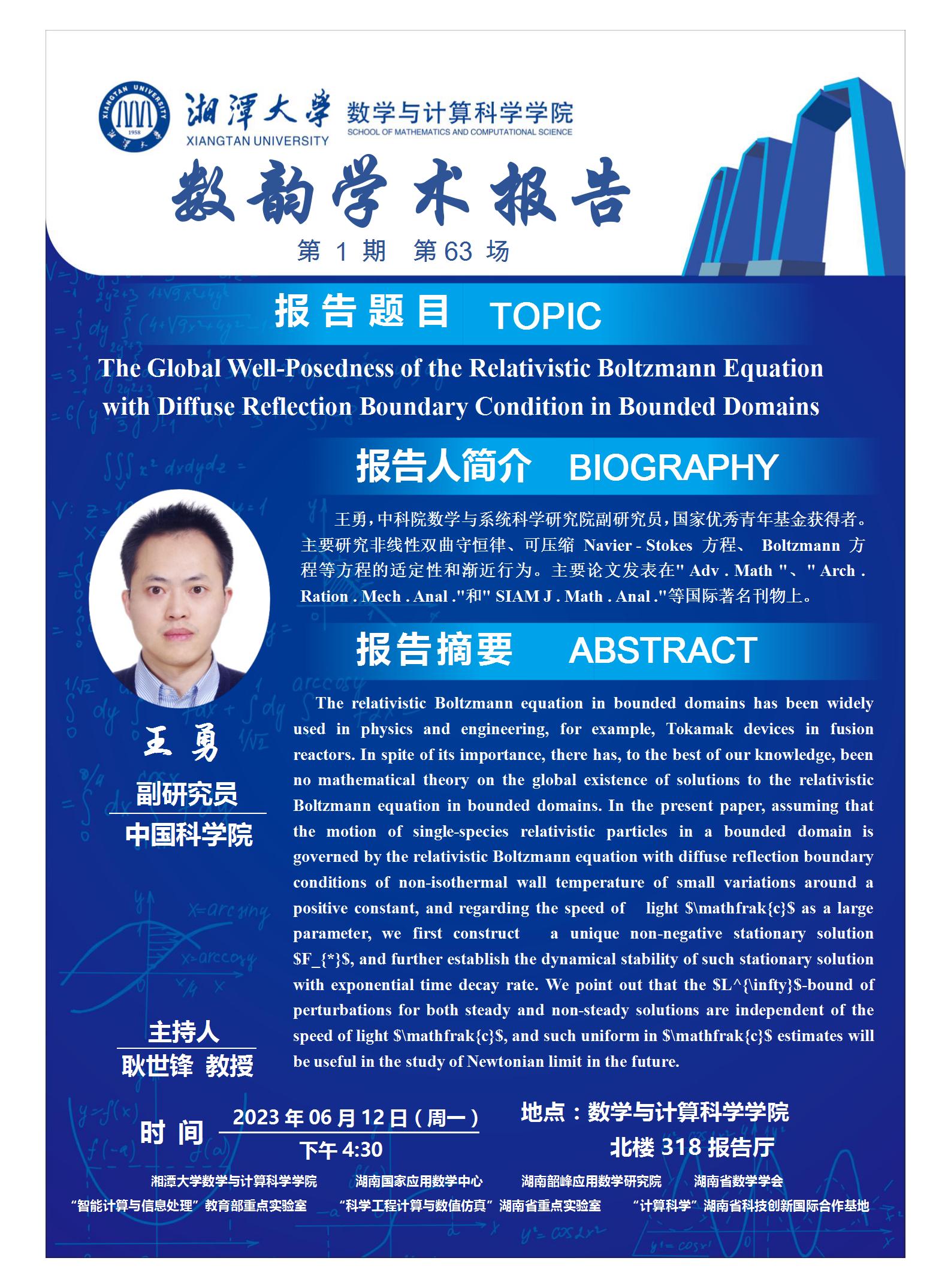 数韵学术报告-The Global Well-Posedness of the Relativistic Boltzmann Equation with Diffuse Reflection Boundary Condition in Bounded Domains