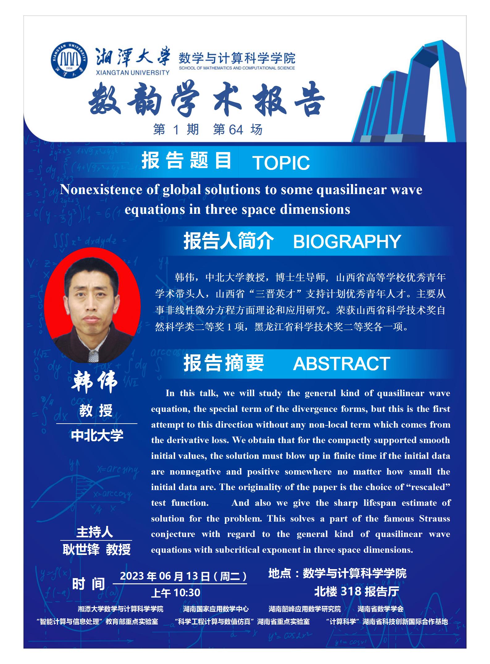 数韵学术报告-Nonexistence of global solutions to some quasilinear wave equations in three space dimensions