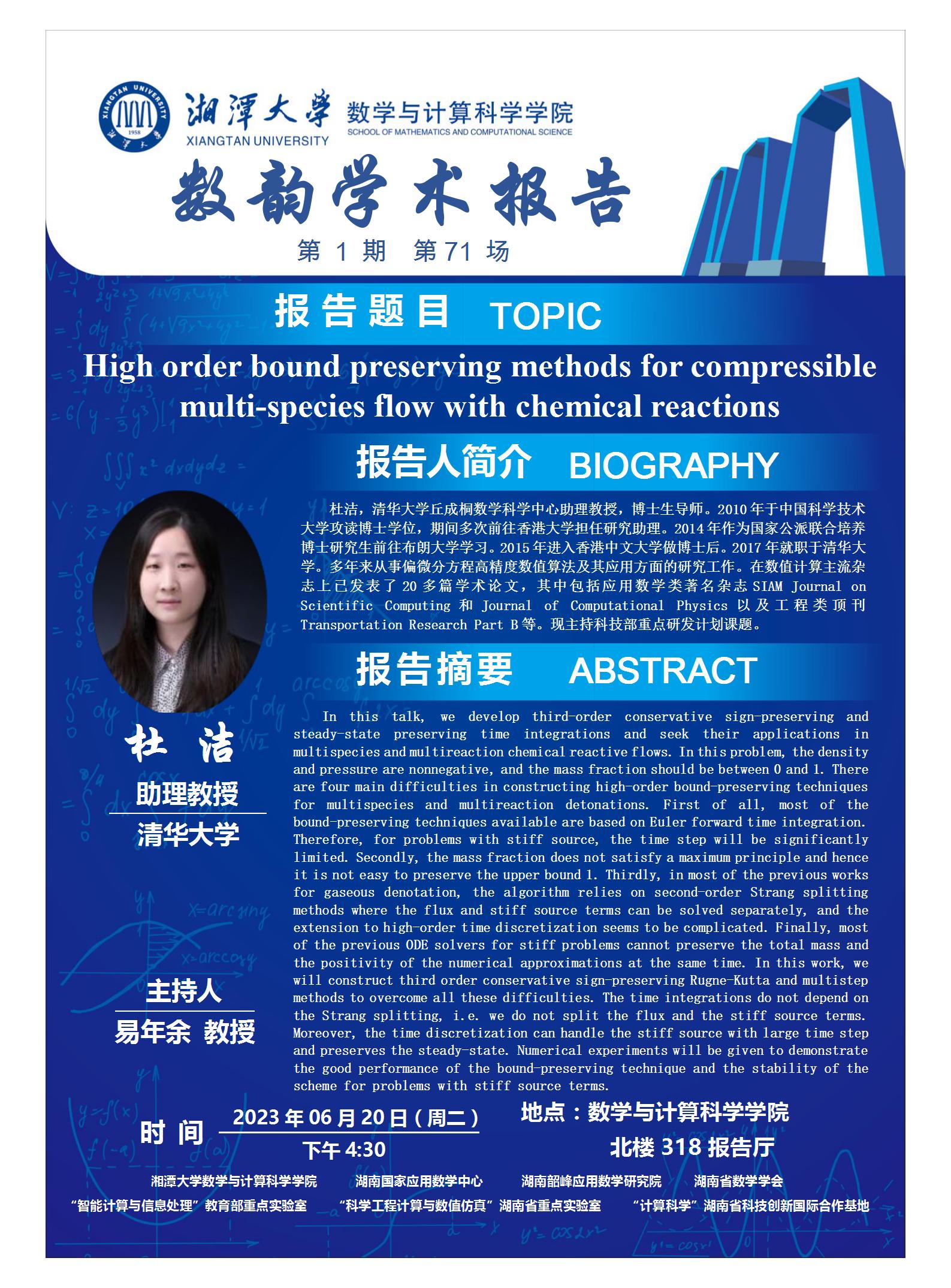 数韵学术报告-High order bound preserving methods for compressible multi-species flow with chemical reactions