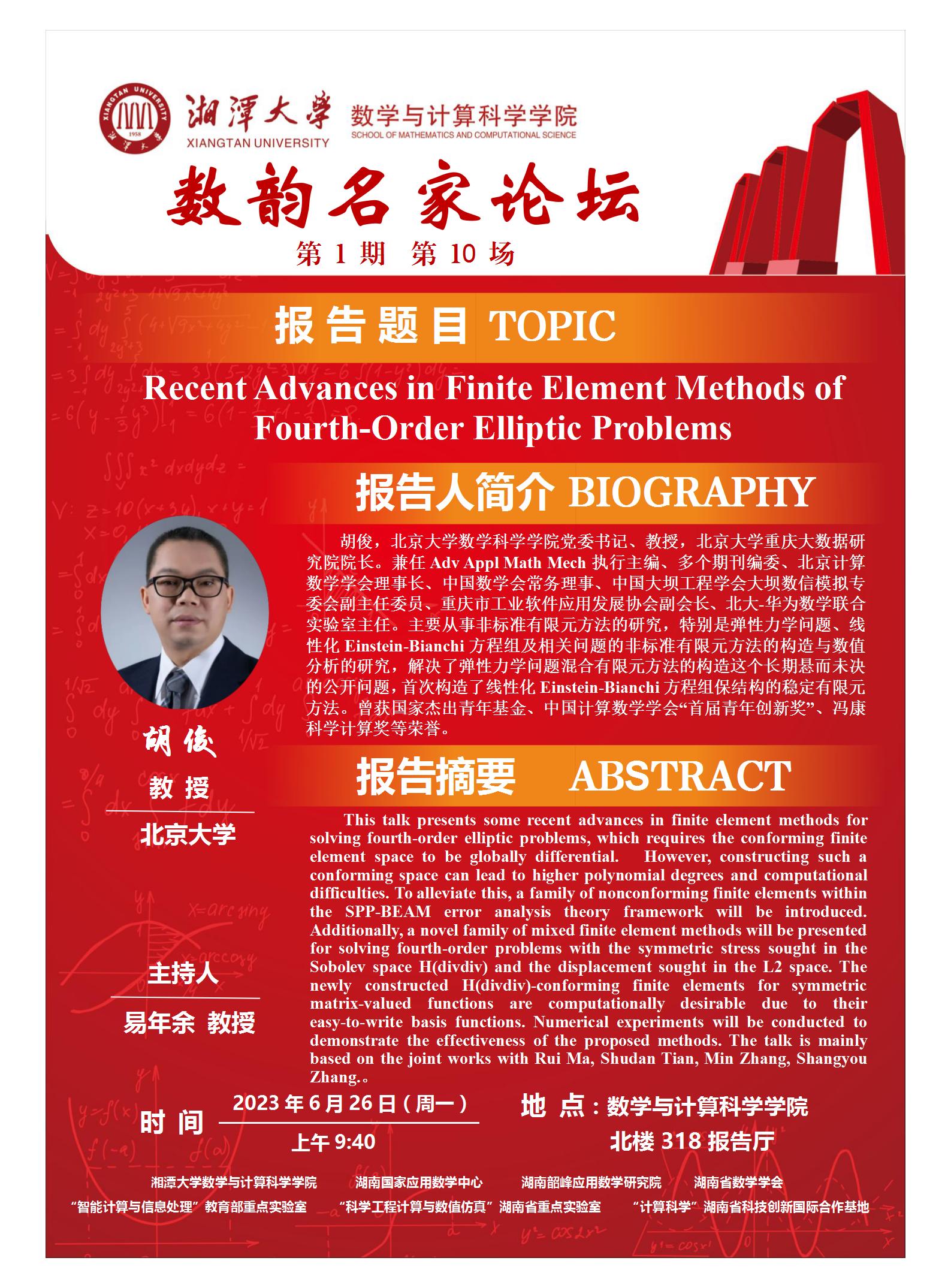 数韵名家论坛-Recent Advances in Finite Element Methods of Fourth-Order Elliptic Problems