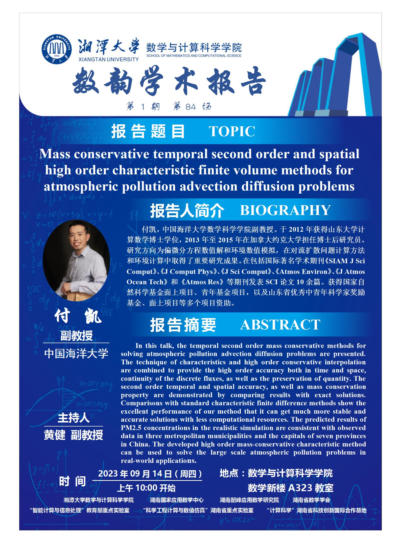 数韵学术报告-Mass conservative temporal second order and spatial high order characteristic finite volume methods for atmospheric pollution advection diffusion problems