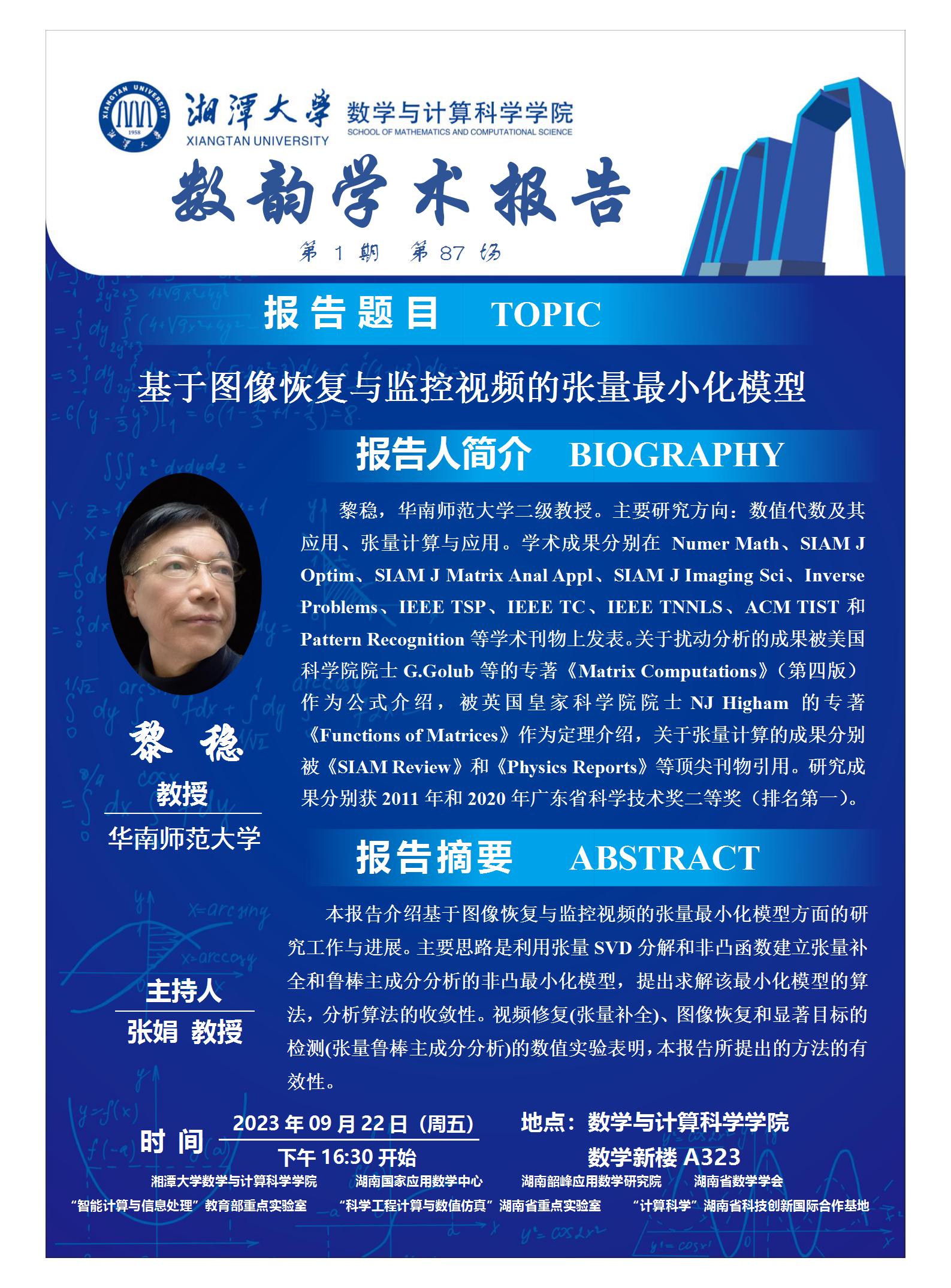 数韵学术报告-基于图像恢复与监控视频的张量最小化模型