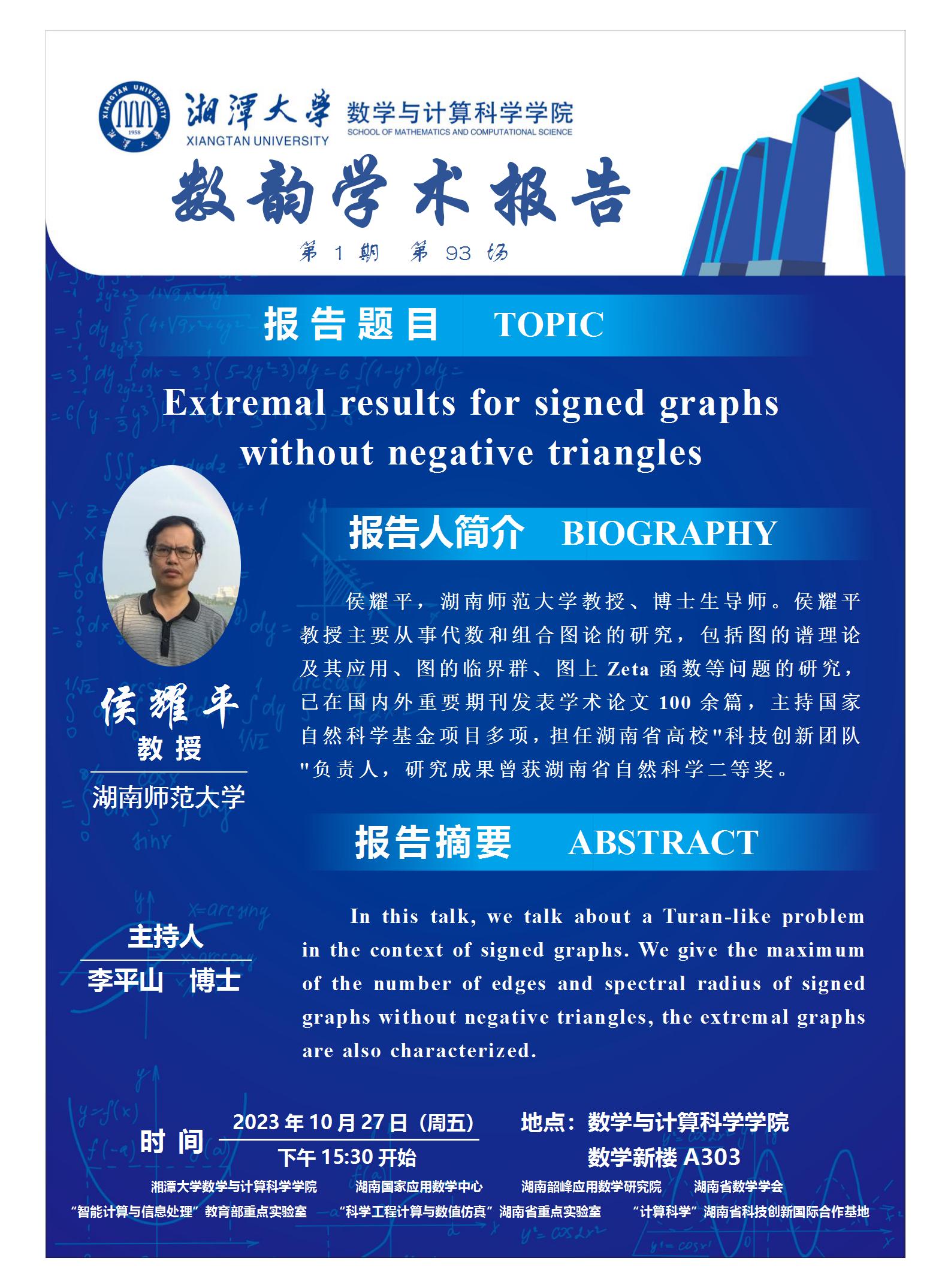 数韵学术报告-Extremal results for signed graphs without negative triangles