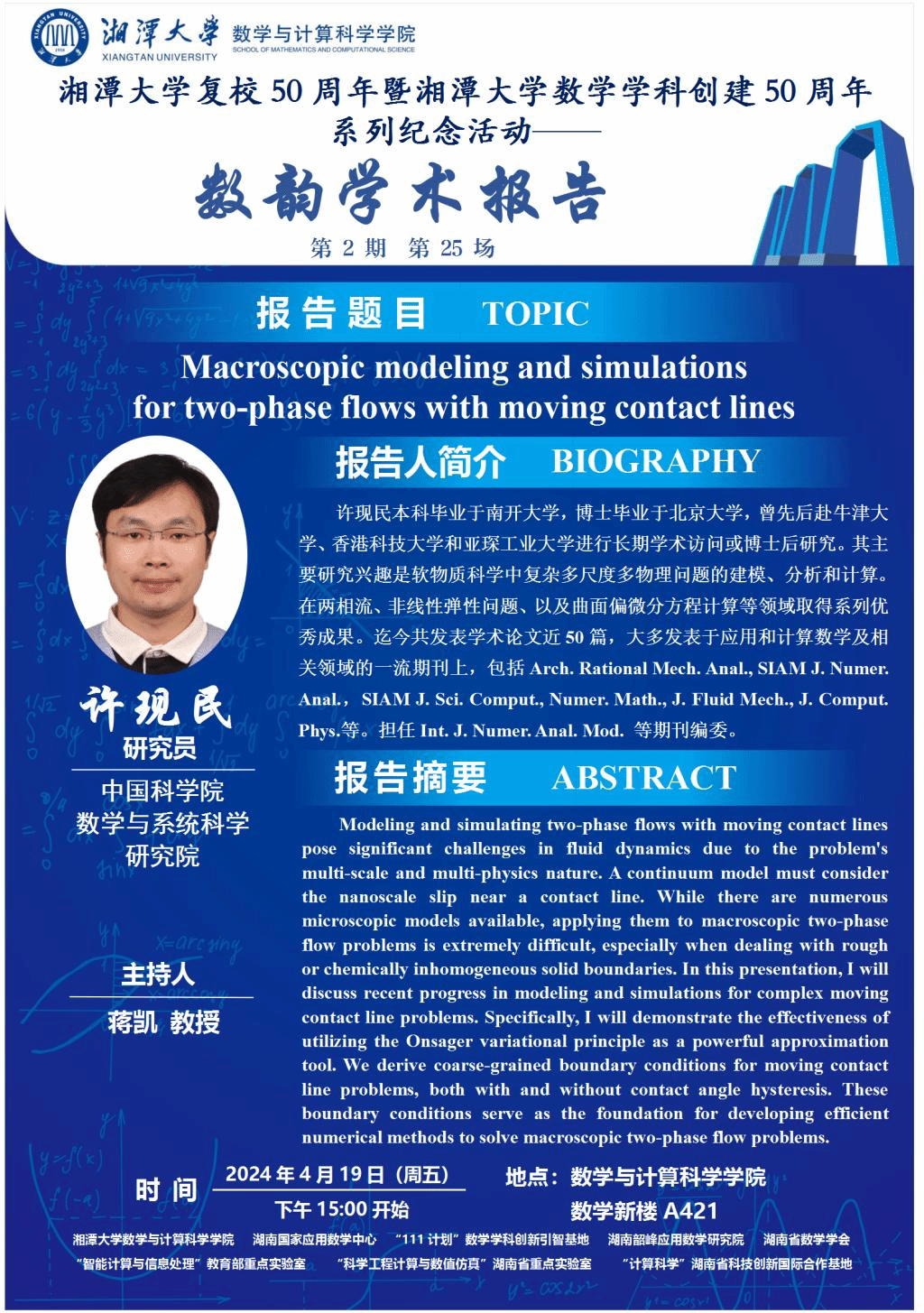 数韵学术报告-Macroscopic modeling and simulations for two-phase flows with moving contact lines