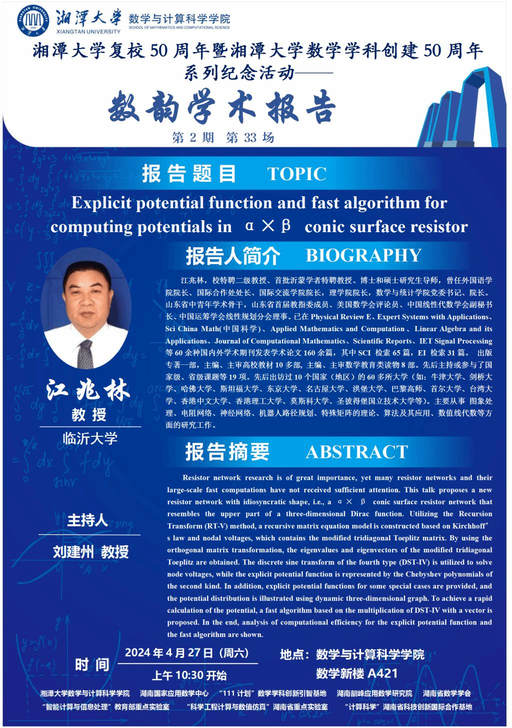 数韵学术报告-Explicit potential function and fast algorithm for computing potentials in α×β conic surface resistor