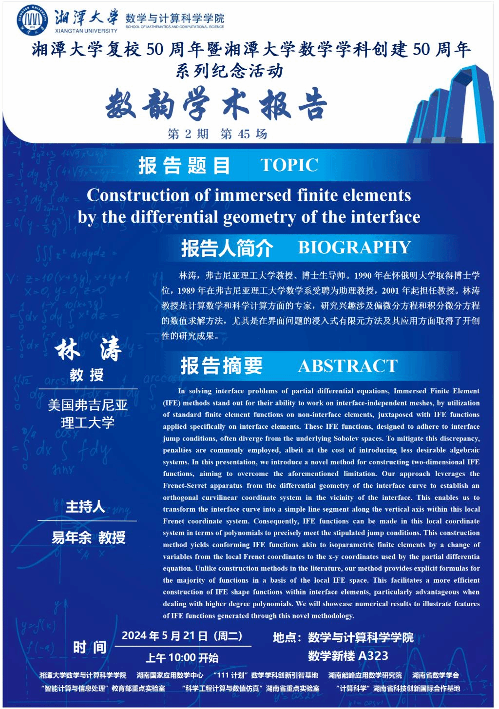 数韵学术报告-Construction of immersed finite elements by the differential geometry of the interface