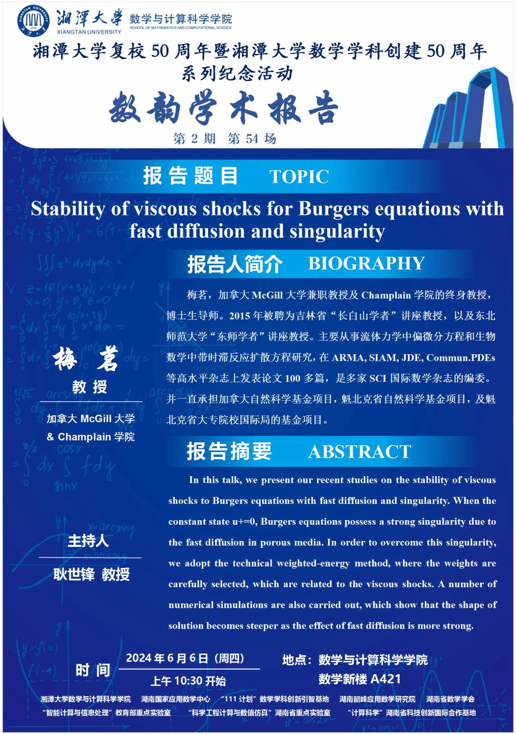数韵学术报告-Stability of viscous shocks for Burgers equations with fast diffusion and singularity