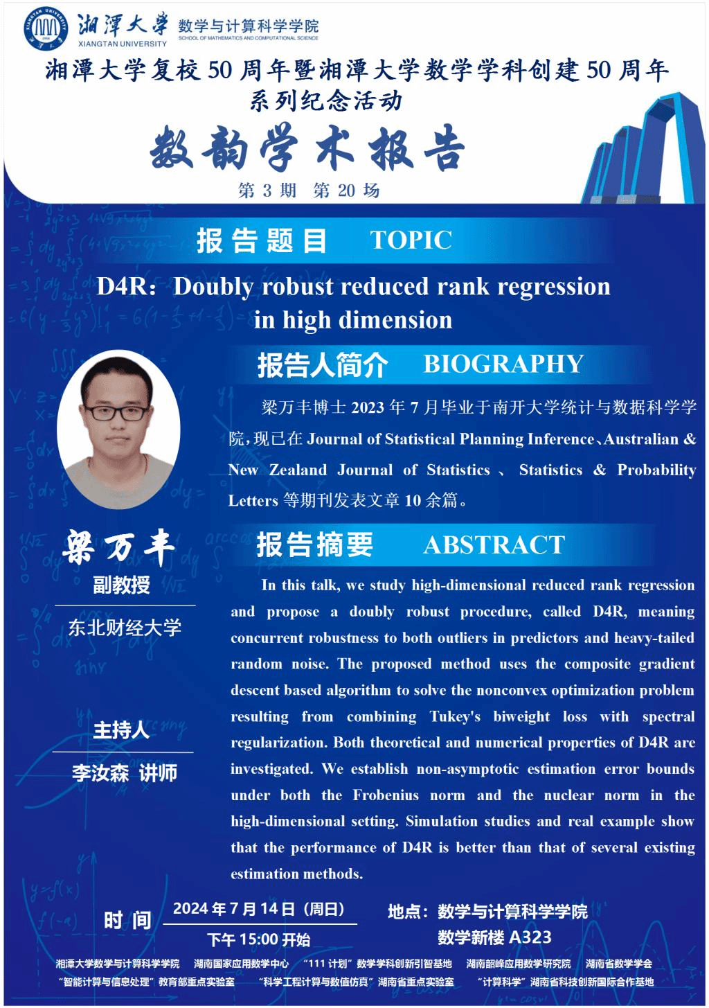 数韵学术报告-D4R:Doubly robust reduced rank regression in high dimension