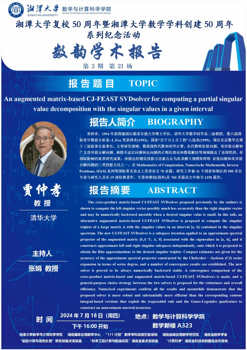 数韵学术报告-An augmented matrix-based CJ-FEAST SVDsolver for computing a partial singular value decomposition with the singular values in a given interval