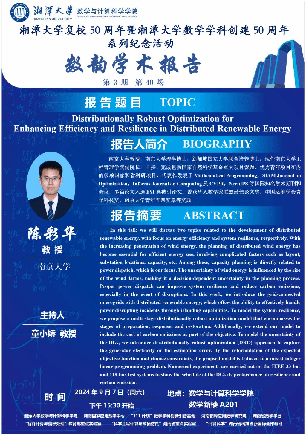数韵学术报告-Distributionally Robust Optimization for Enhancing Efficiency and Resilience in Distributed Renewable Energy