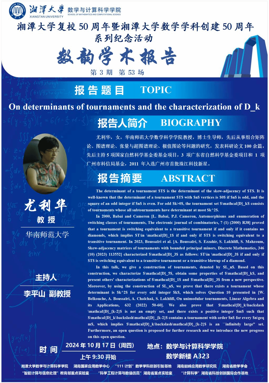 数韵学术报告-On determinants of tournaments and the characterization of D_k