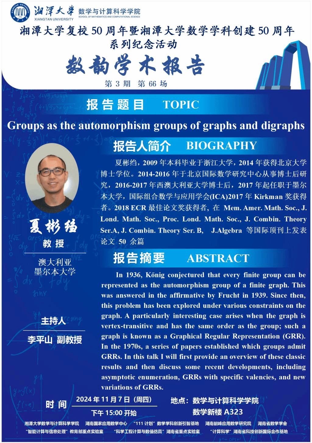 数韵学术报告-Groups as the automorphism groups of graphs and digraphs