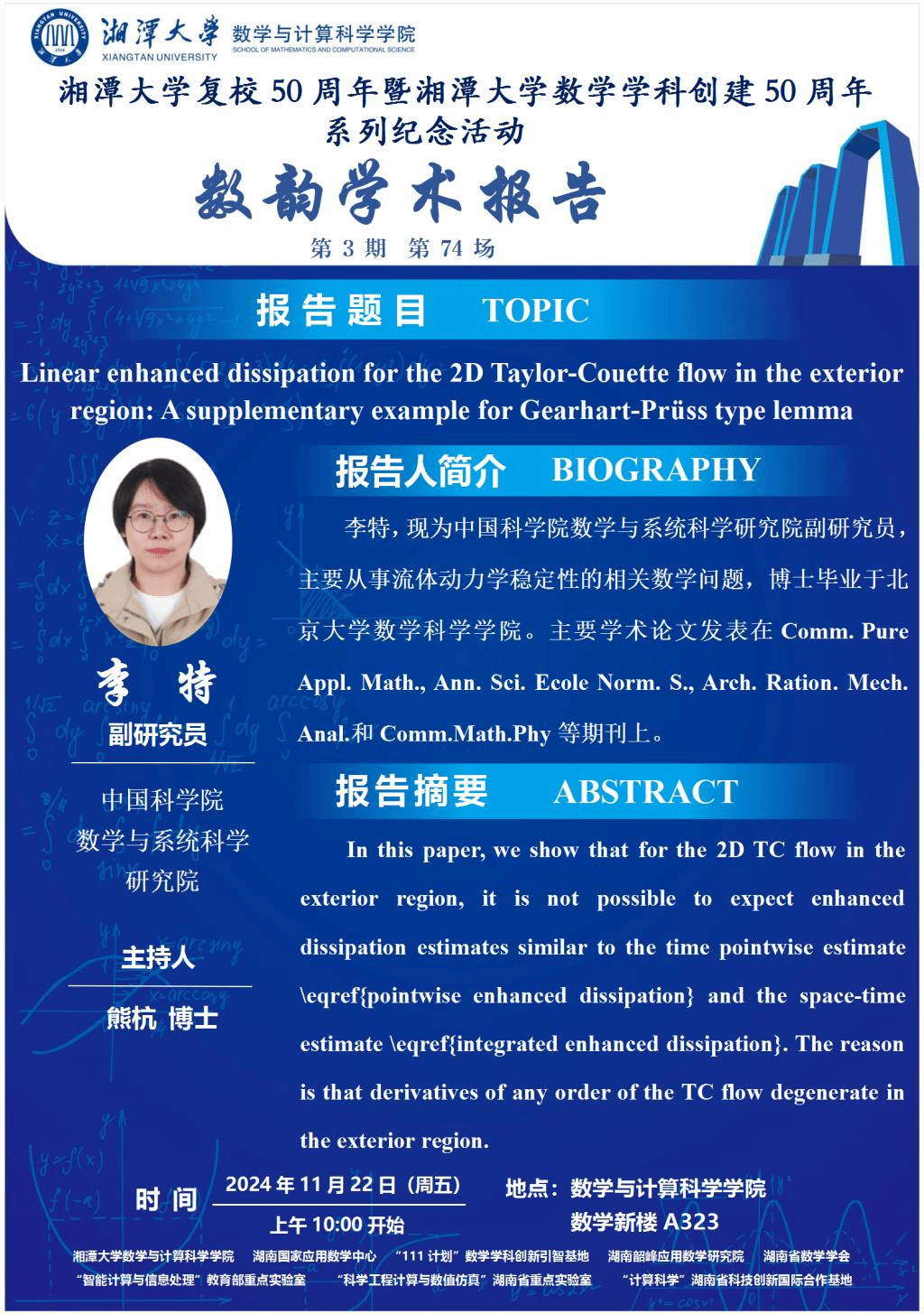 数韵学术报告-Linear enhanced dissipation for the 2D Taylor-Couette flow in the exterior region: A supplementary example for Gearhart-Prüss type lemma
