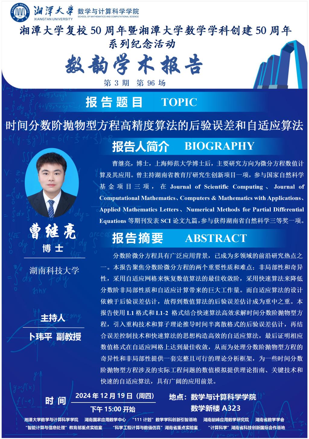 数韵学术报告-时间分数阶抛物型方程高精度算法的后验误差和自适应算法