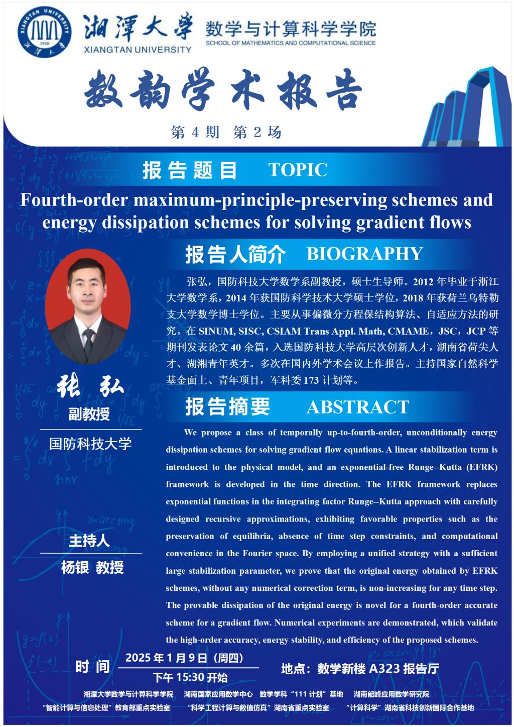 数韵学术报告—Fourth-order maximum-principle-preserving schemes and energy dissipation schemes for solving gradient flows