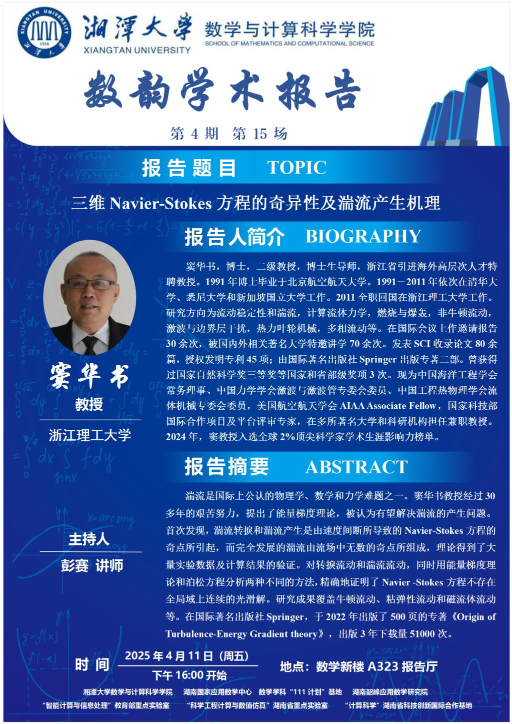 数韵学术报告-三维Navier-Stokes方程的奇异性及湍流产生机理