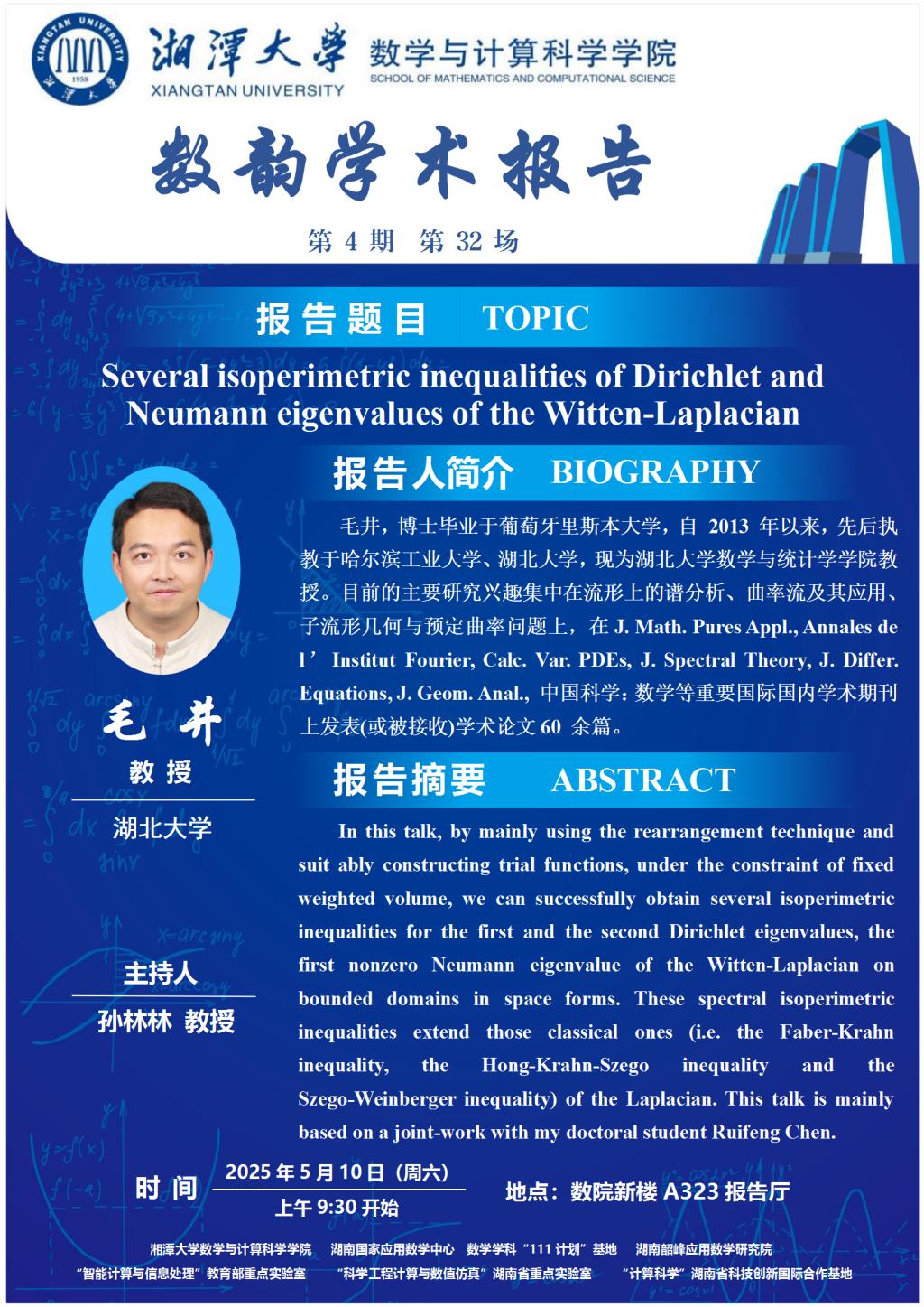 数韵学术报告-Several isoperimetric inequalities of Dirichlet and Neumann eigenvalues of the Witten-Laplacian