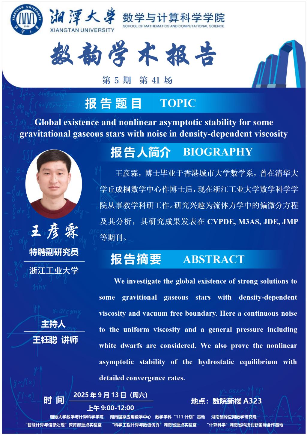 数韵学术报告-Global existence and nonlinear asymptotic stability for some gravitational gaseous stars with noise in density-dependent viscosity
