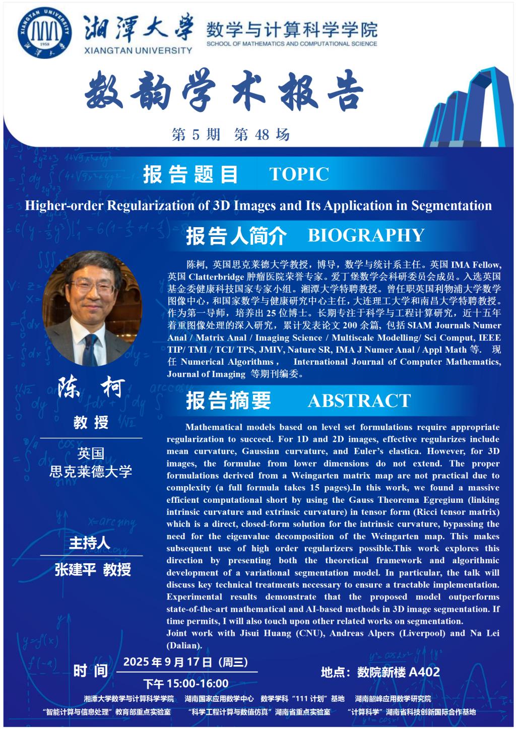 数韵学术报告-Higher-order Regularization of 3D Images and Its Application in Segmentation