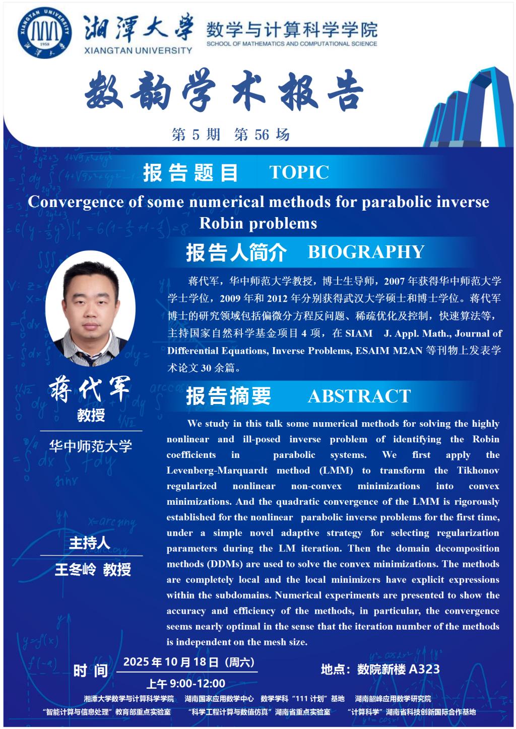 数韵学术报告-Convergence of some numerical methods for parabolic inverse Robin problems