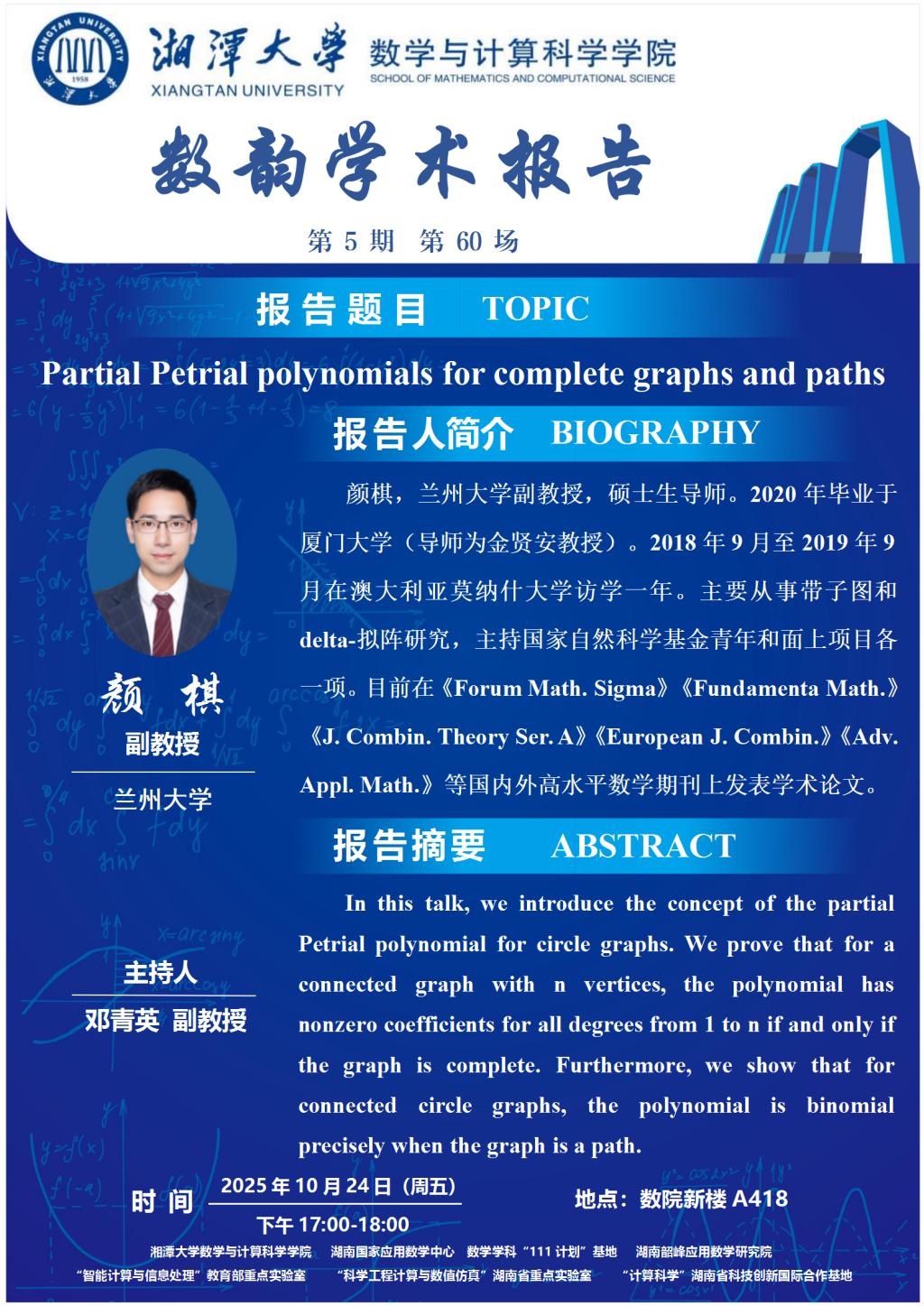 数韵学术报告-Partial Petrial polynomials for complete graphs and paths