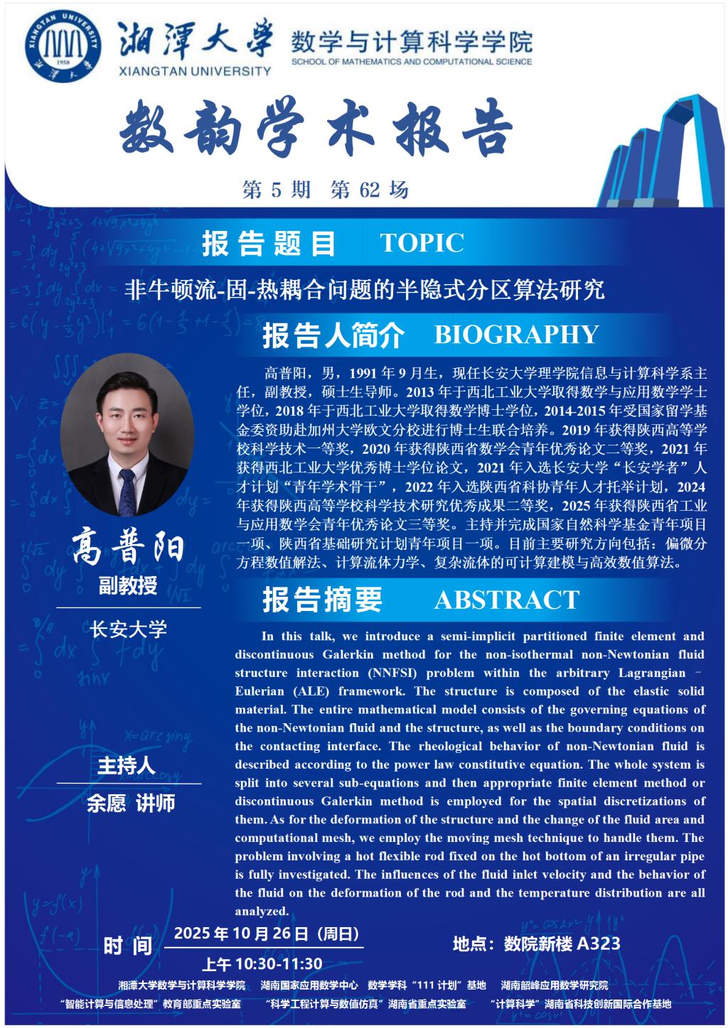 数韵学术报告-非牛顿流-固-热耦合问题的半隐式分区算法研究