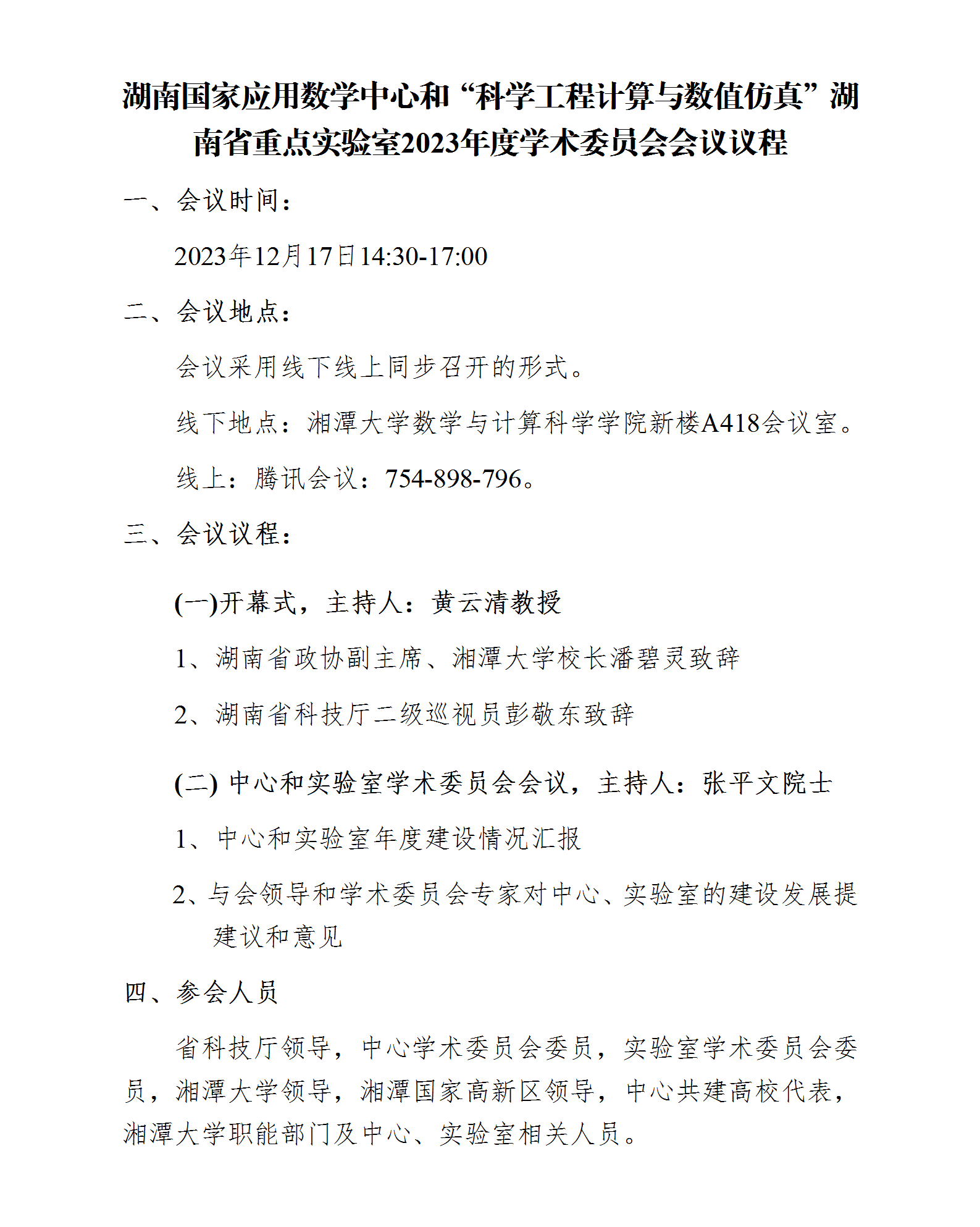 湖南国家应用数学中心和“科学工程计算与数值仿真”湖南省重点实验室2023年度学术委员会会议即将开展