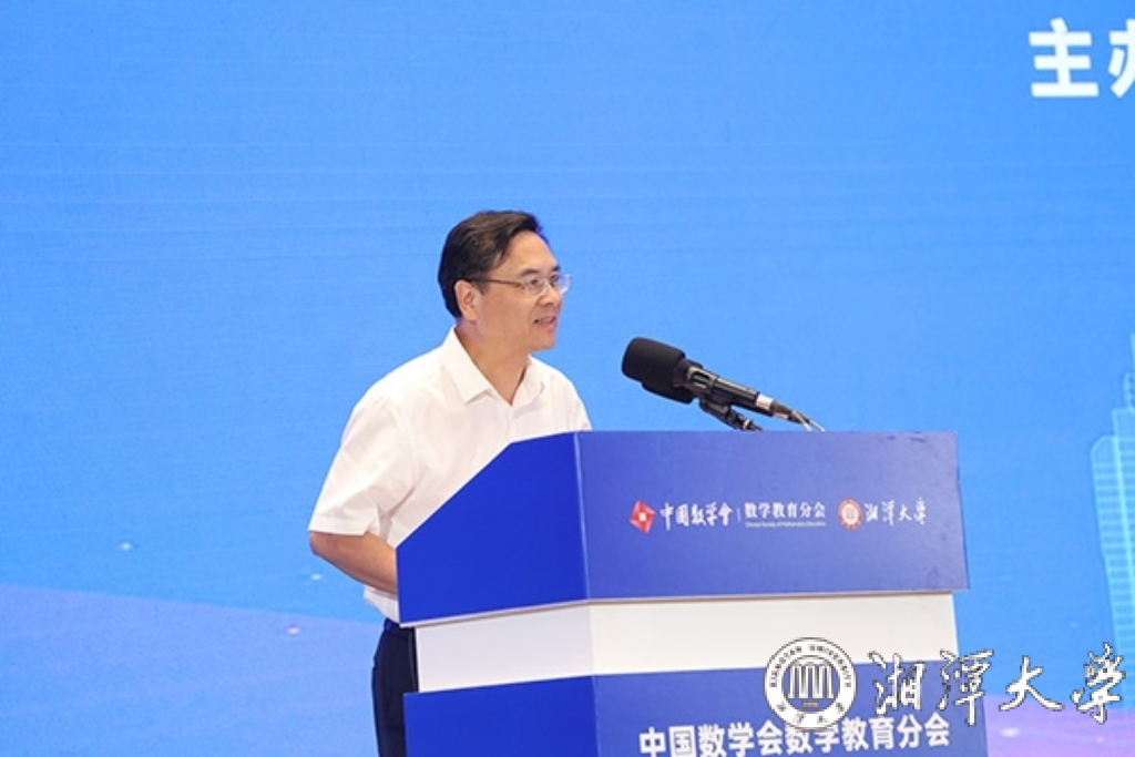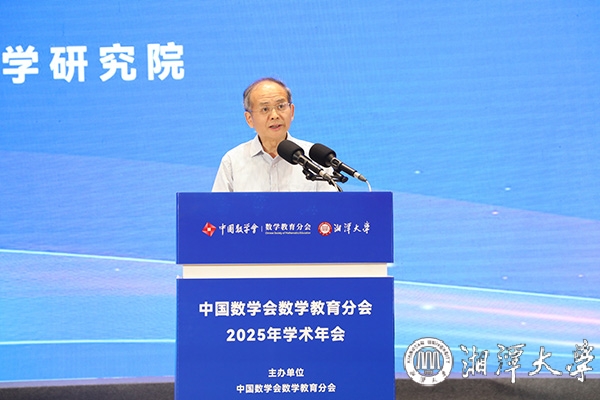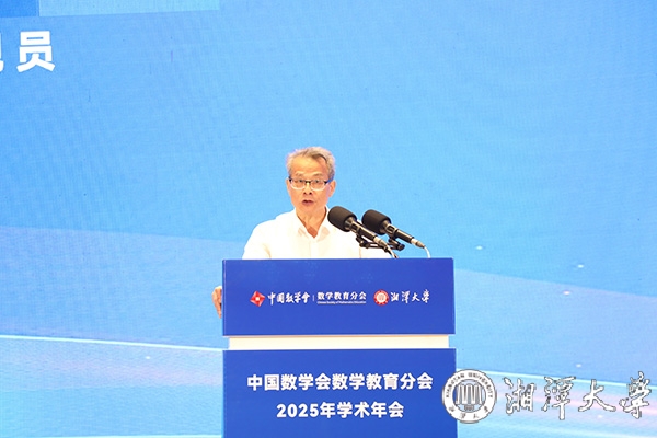 田刚向与会专家、代表介绍了数学教育分会成立以来所取得的工作成效。他表示,数学是自然科学与技术创新的基石,是推动社会进步和科技革命的核心驱动力。而数学教育作为基础教育的关键组成部分,不仅培养学生的逻辑思维、创新意识和解决问题的能力,更肩负着为国家培育未来人才、夯实科技根基的重大使命。他还特别提到,湘潭大学是毛主席亲自倡办、亲笔题写校名并亲切嘱托一定要办好的大学,数学学科底蕴深厚、特色鲜明,在此举办年会意义非凡。